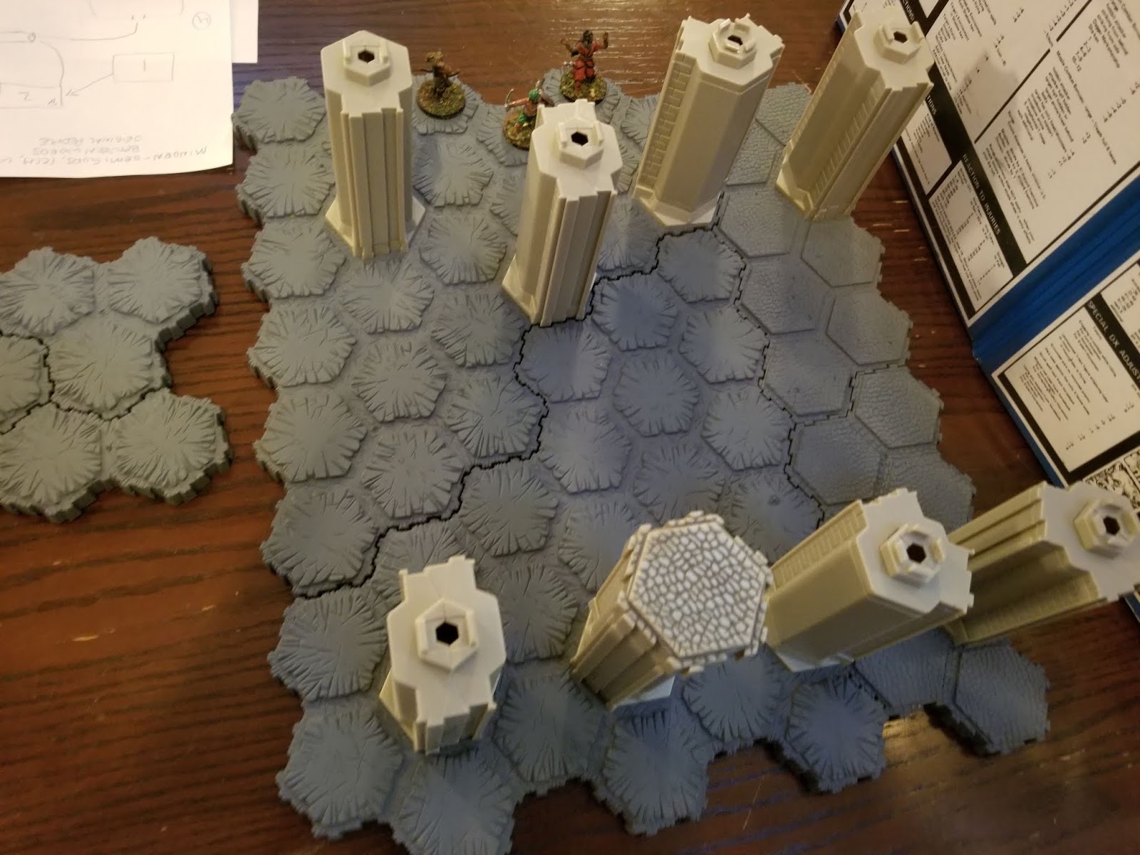 Another fight with some rival scavengers that really shows off how much cooler Heroscape terrain is than a paper hex map.